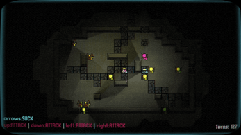 I really dig the minimal roguelike visuals and SFX. I couldn't fully grasp the mechanics and why the "suck" skill didn't always work.